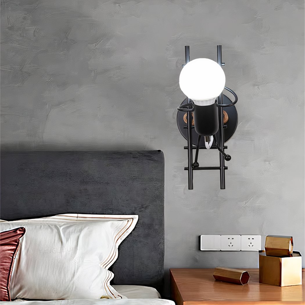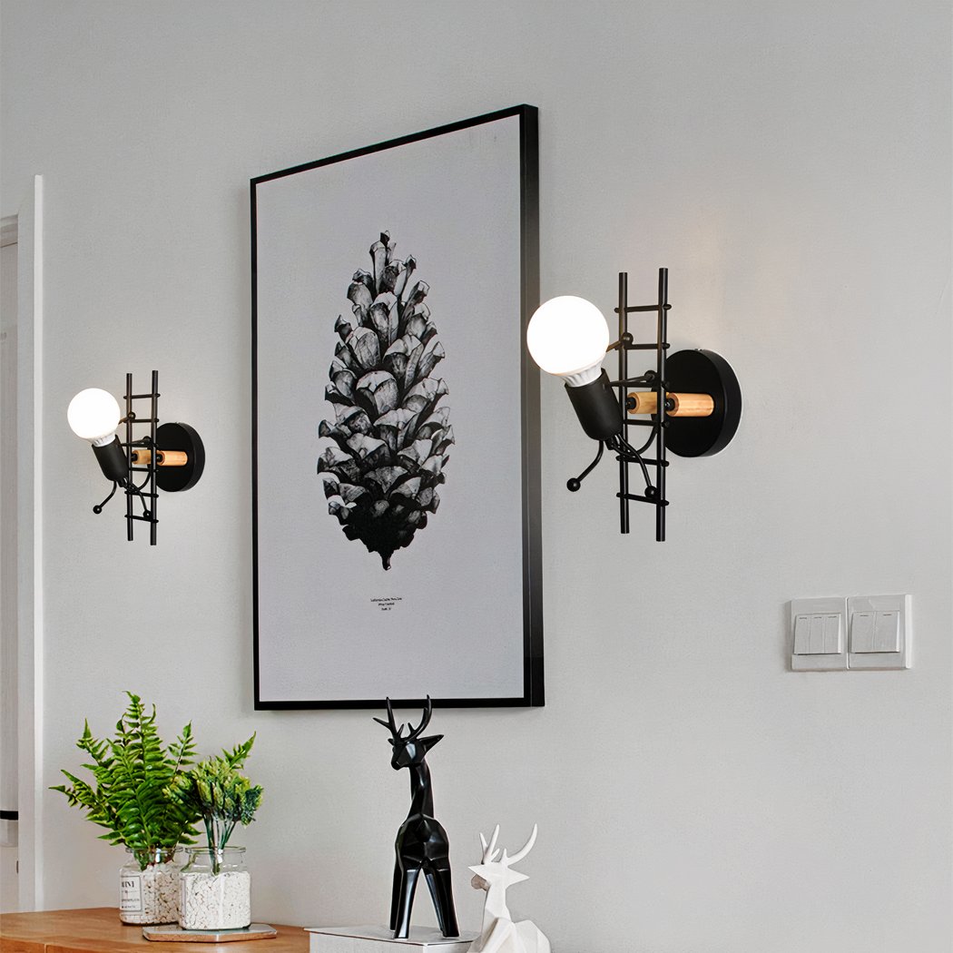 Give your child’s bedroom a playful, imaginative touch with this black metal wall light. Featuring a modern design, it features an adorable ladder-climbing man, transforming the lighting into a truly interactive scene.