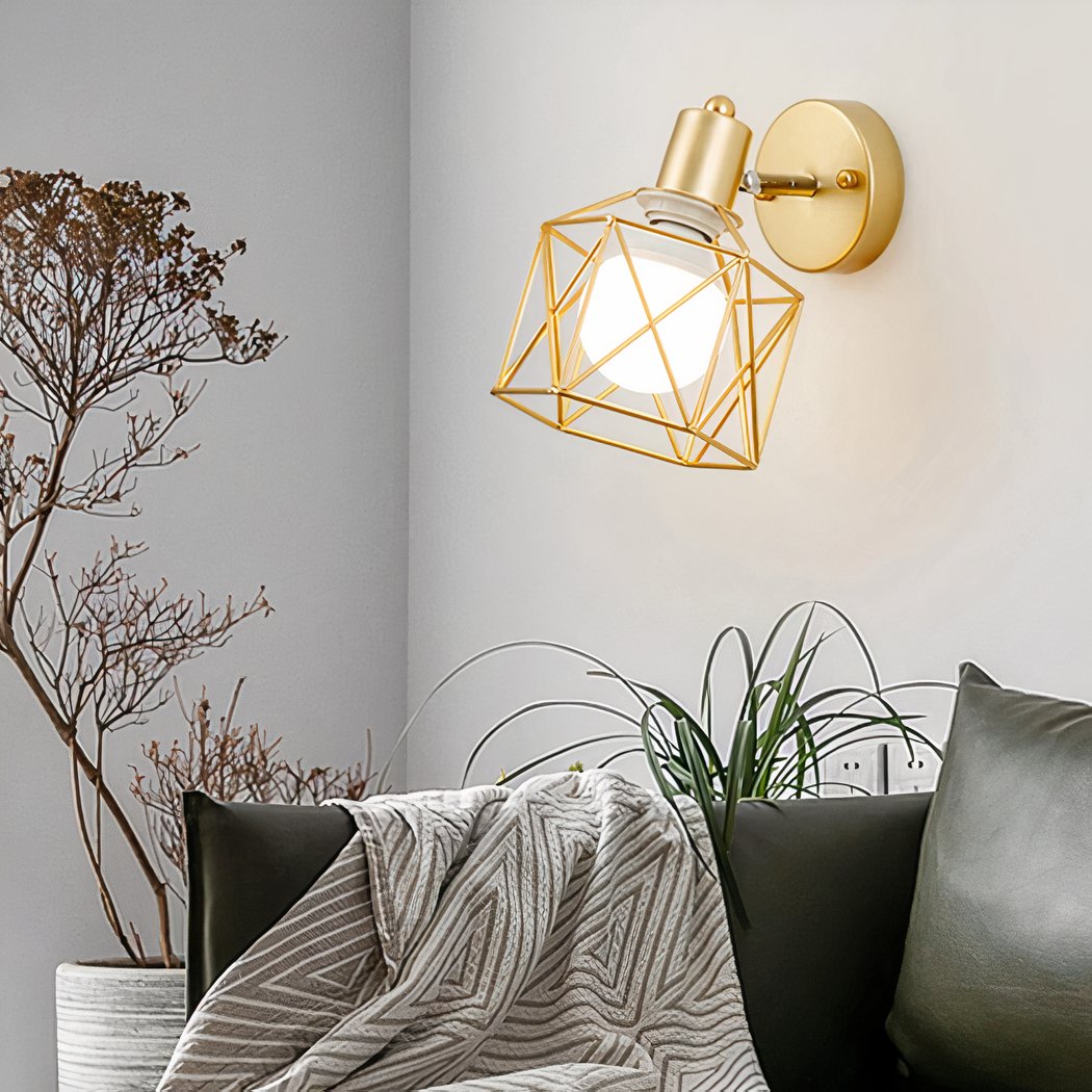 Discover the perfect marriage of art and function with this LED wall light. Its gilded iron cage, with its carefully crafted geometric shapes, envelops the light, transforming simple illumination into a mesmerizing visual experience. It's an invitation to redefine the way you perceive brightness in a modern setting.